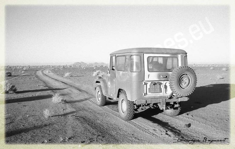 Mon vieux Toyota BJ40 au Maroc en 1989 sur la piste entre Tata et Foum-Zguid. Photo prise en argentique.