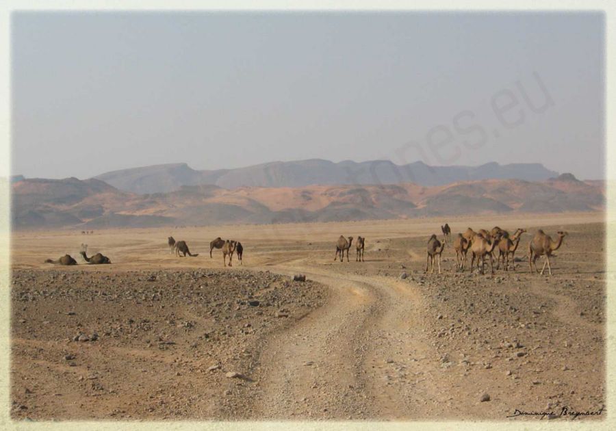 Maroc, le 30 Août 2007. Troupeau de dromadaires dans les environs du Daya-el-Maïder.