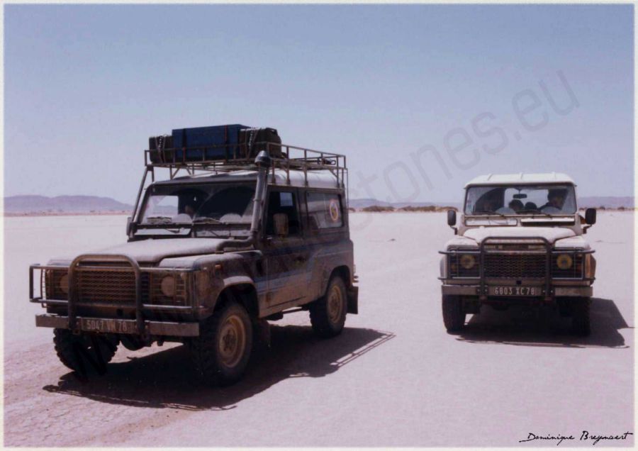 Maroc en 1991. En Land 90 Tdi et Land 110 sur le lac Iriki.