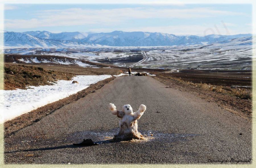 Maroc, le 21 Décembre 2008. Un bonhomme de neige dans le Haut Atlas !