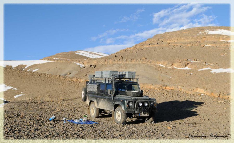 Maroc, le 22 Décembre 2008. Petit déjeuner après une nuit par moins 6 degrés dans le Haut Atlas proche d'Agoudal.