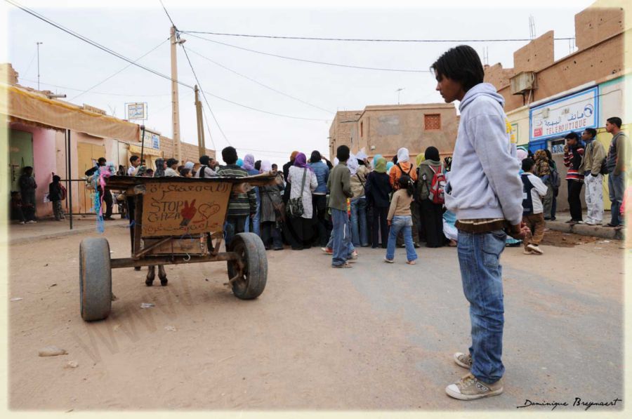 Maroc, le 31 Décembre 2008. Manifestation d'étudiants à Mhamid contre la guerre de Gaza.