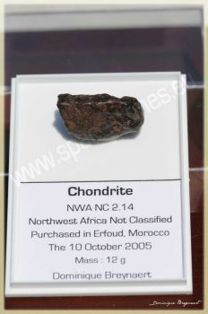 NWA NC 2.14 est une météorite de type Chondrite Ordinaire Non Classifiée d’un poids de 12 gr.