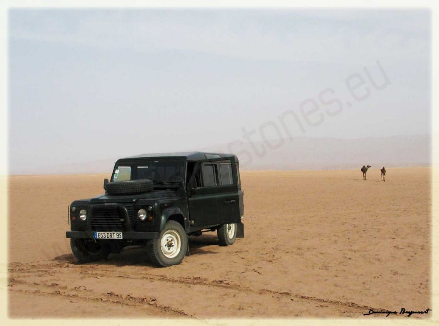 Maroc, le 14 Août 2004. Land et dromadaires sur le lac Iriki.