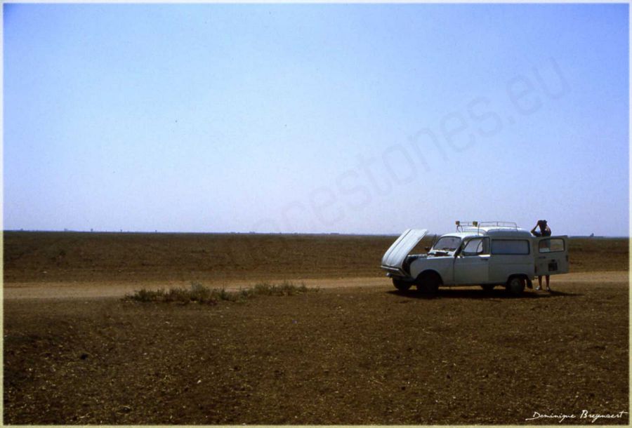 Encore une petite panne de notre 4L lors de notre périple au Maroc en 1983.
